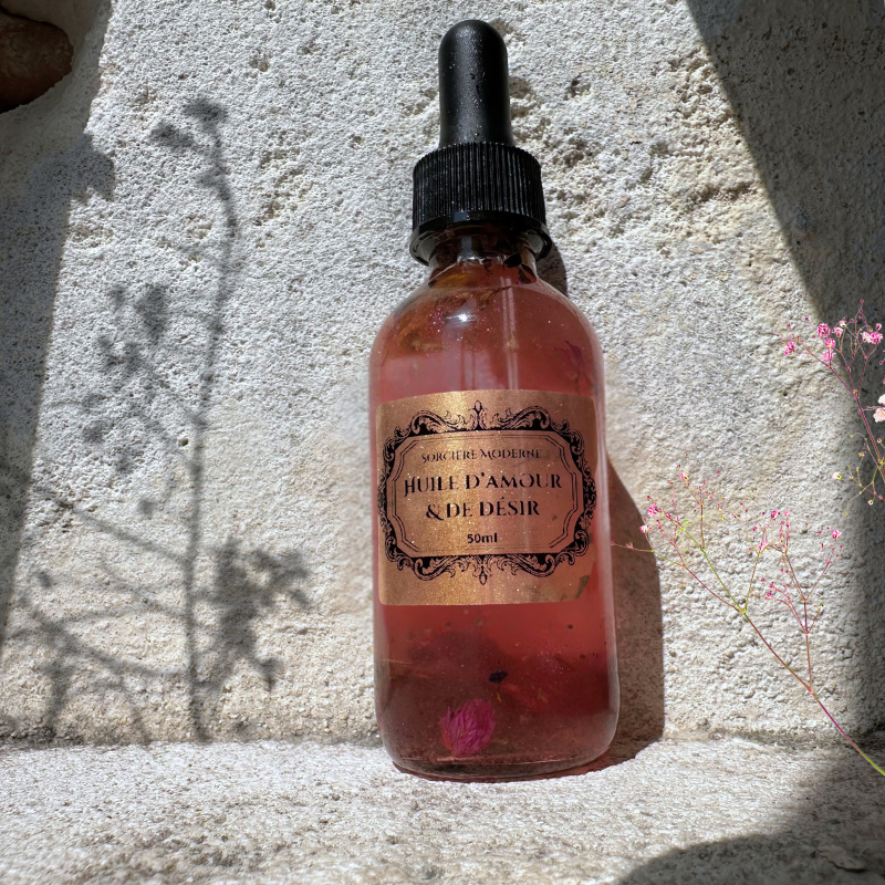 Enflammez la passion et attirez l’amour véritable avec notre huile d’amour et de désir, concoctée à la main par une sorcière experte pour sublimer vos rituels amoureux.